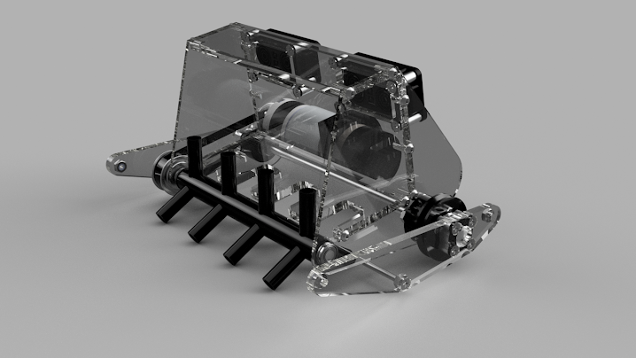 A horizontal intake generally is a wider style of intake that has the intake rotating on a horizontal axis or plane. Horizontal intakes are generally used for intaking smaller game elements, as these types of intakes can control more than one piece at a time. Horizontal intakes have been used successfully in games such as RES-Q and Rover Ruckus, where teams needed to pick up small cubes and balls from the floor.