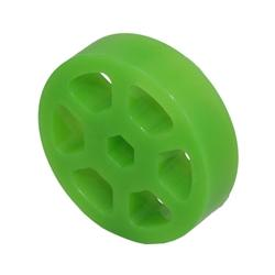 The available bore options vary depending on the vendor. As with standard wheels, durometer (hardness of rubber) affects both traction and longevity, sacrificing one for the other. However, in the case of intakes, a lower durometer is recommended to have maximum grippiness for intaking game elements.