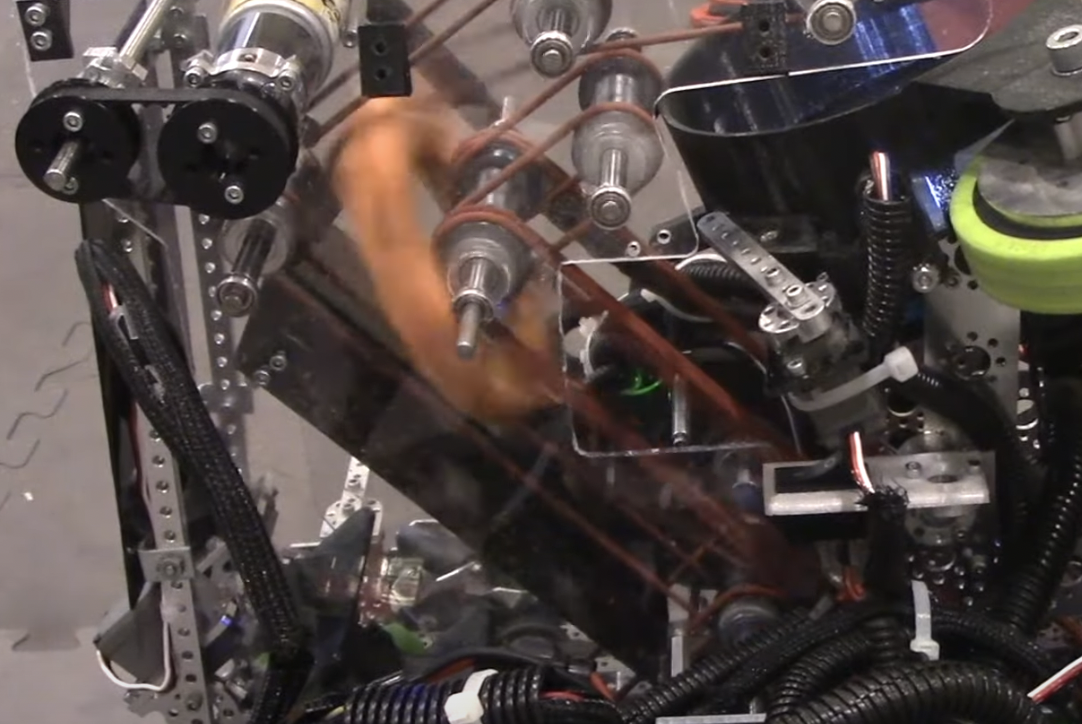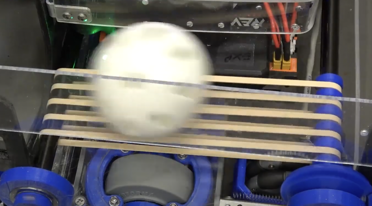 The simplest form of transfer is a direct transfer. This is the term for when the mechanism that an item is being moved to is simply placed directly behind whatever is gathering the item. The most common form of this is putting an arm or bucket directly behind the intake to collect the item as soon as it enters the intake. Since there is no mechanism between the intake and the outtake system, this is also referred to as a “transferless” system.