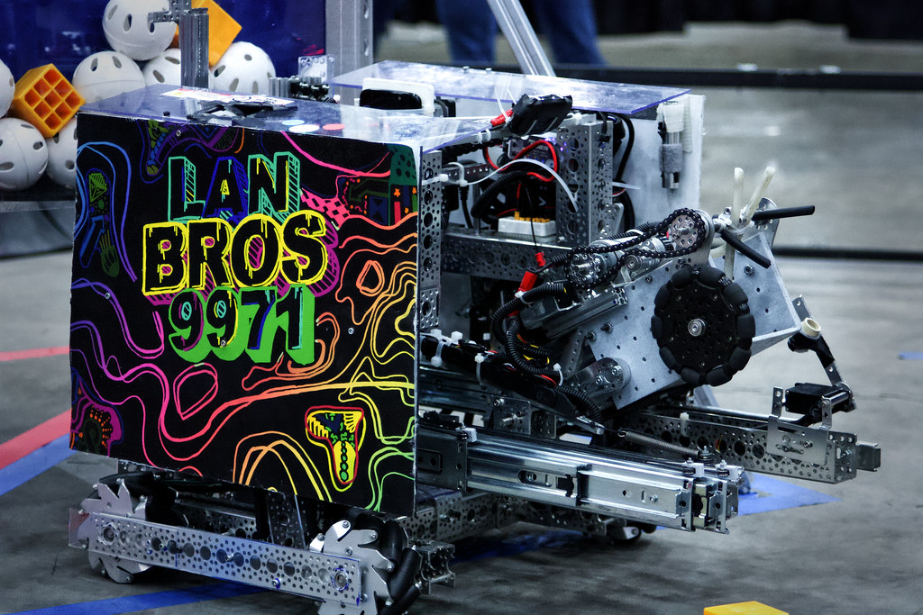 Another successful Actobotics based robot, 9971 LanBros: 2019 Winning Alliance Captain (Detroit), Rover Ruckus¶