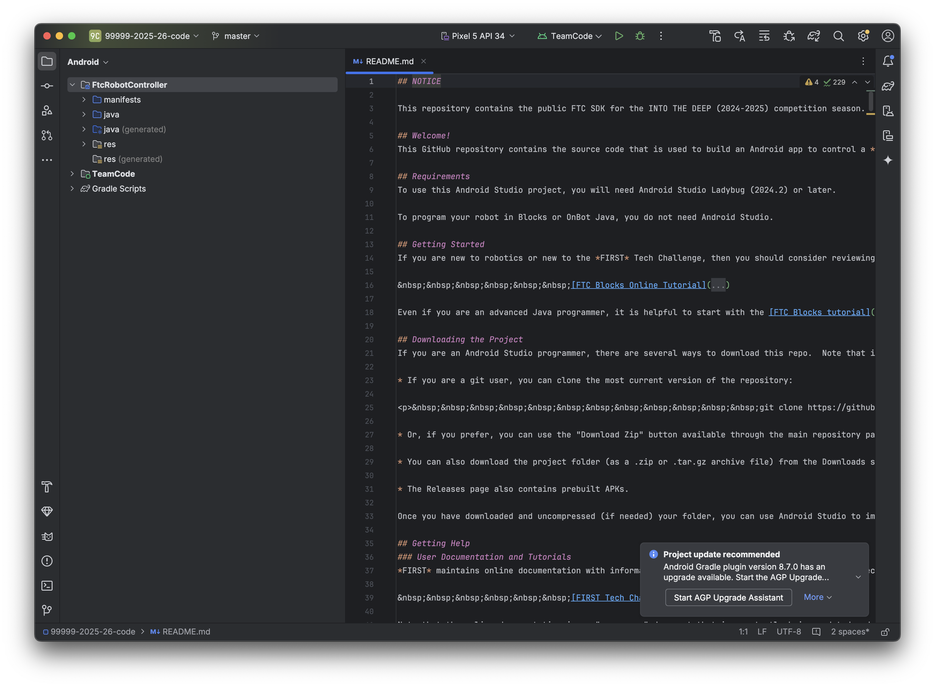 Now that you have Android Studio installed, you’re going to want to use the current season’s FTC® SDK (software development kit) where you will create your team’s code.