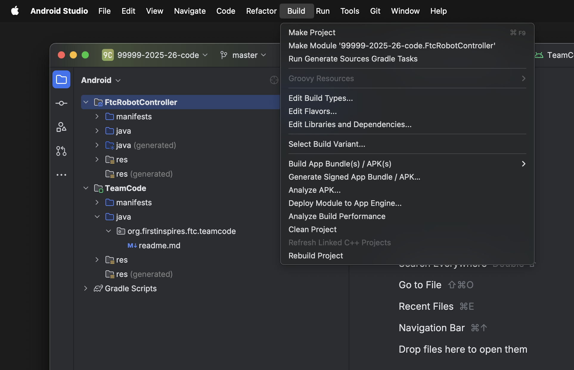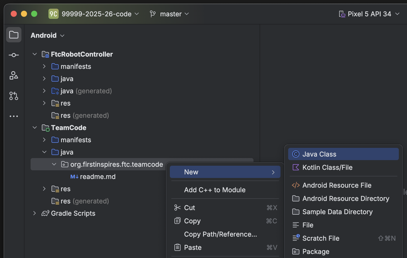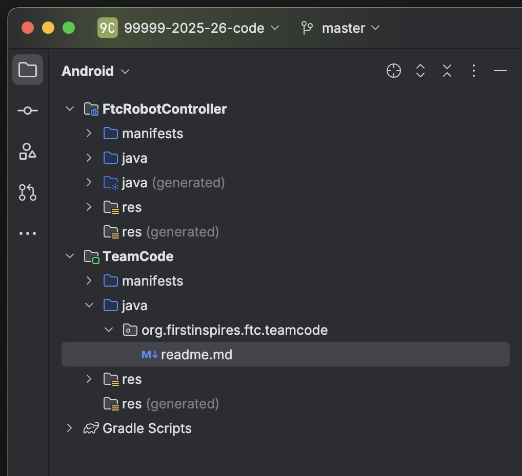 FtcRobotControllerto something that reflects your team and the season, e.g. team number 99999 might use99999-2025-26-code.