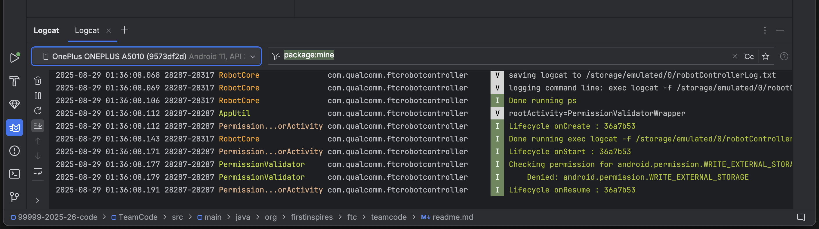 If you have an issue you don’t understand, you can take a screenshot of the log or select and copy the error and ask a question in the FTC discord .
